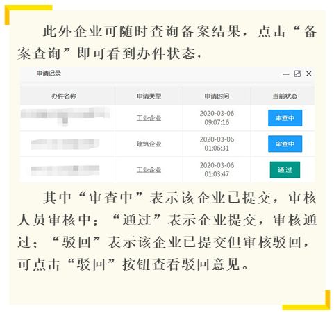 ????為做好新冠肺炎疫情防控工作,有序推動企業復工復產,“復工復產企業備案”系統上線了。企業進入“復工復產企業備案”系統進行線上備案申請,讓政務服務變“企業跑腿”為“信息跑路”,助力企業做好疫情防控,有序復工復產。