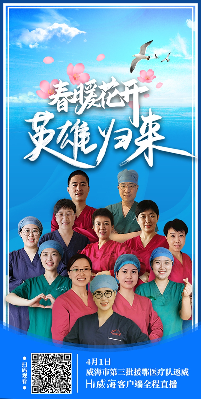 ????3月17日,威海市第三批援鄂醫(yī)療隊一行12人(屬山東省第八批)圓滿完成援助醫(yī)療任務(wù)離開武漢。在德州市集中隔離14天后,4月1日,我市第三批援鄂醫(yī)療隊隊員將乘坐大巴車,于當(dāng)日下午抵達(dá)威海,Hi威??蛻舳藢⑷踢M(jìn)行直播,歡迎掃碼觀看!