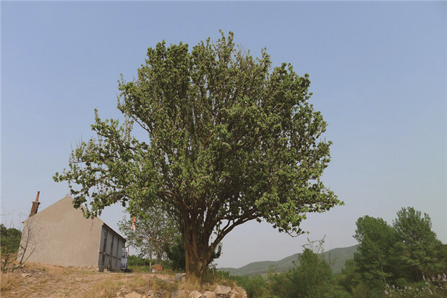 ??????東車門夼木瓜樹 生長于高區初村鎮東車門夼村南的老庵山上,樹齡600余年。據村里老人講,村民來此定居前,已有這株樹,為當時尼姑庵的老尼栽種。時光流逝,傳說中的尼姑庵早已不在,只有這株木瓜樹仍然煥發出勃勃生機,至今開花結果。(Hi威海客戶端記者 沈道遠/文 威海市文化和旅游局供圖)