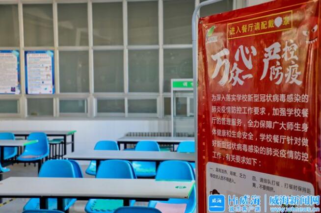 ??????在威海一中東校區門口,首先映入眼簾的便是測溫通道,學生通過人工測溫或數字測溫的方式,進入學校。在校期間,為保障學生們的安全,威海一中大到小班化教學,小到通風消毒,規劃了50多條應對措施。