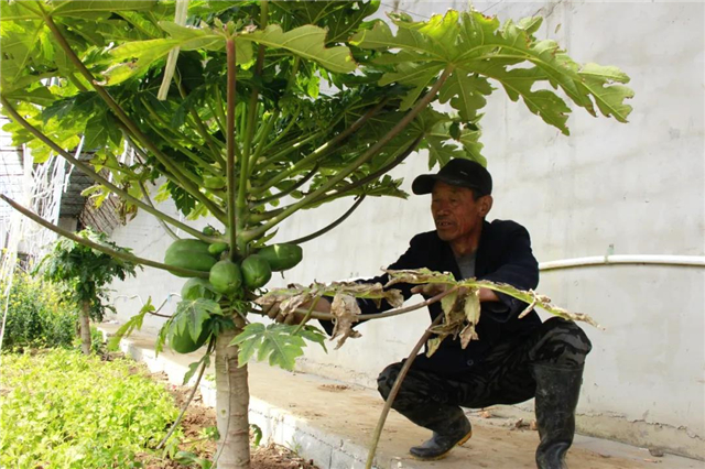 ??????“你看這些木瓜,去年7月種的小樹苗,到了12月就長到了50多公分,還掛了不少果呢!”20日,在村北的嘉盛園家庭農場大棚,談起新引進的木瓜樹,臥龍村委主任劉延本興奮不已。