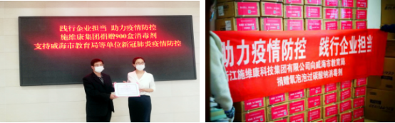 ??????浙江施維康科技集團定向我市教育系統捐贈900盒消毒劑