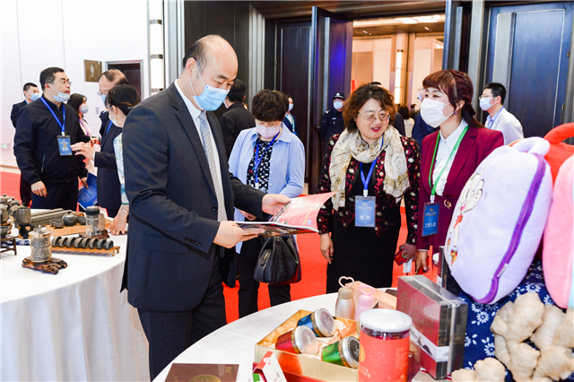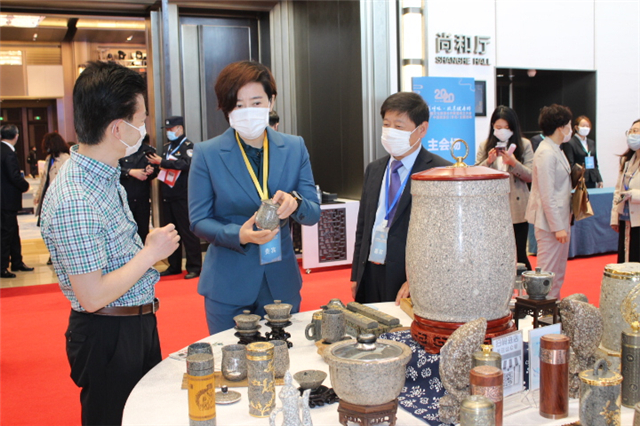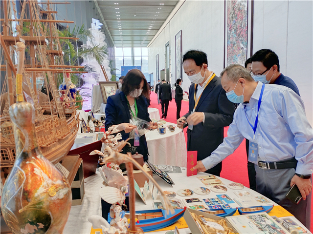 ??????在大會特色文創產品展示區,威海市7家文創企業共展出錫鑲、玻璃內畫、海貝雕、文創旅游紀念品等各類商品197件。錫鑲花瓶、玻璃畫威海風景、琉璃內畫瓶、姜不老姜粉蜜、威海人文八景擺盤等產品,既有威海經典文化元素,又具現代文化創意,受到與會嘉賓的關注和喜愛。(來源:威海市文旅局)