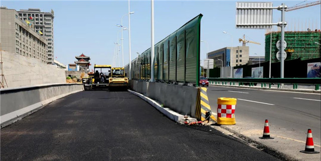 ??????在華夏路至齊魯大道輔路,幾臺攤鋪機和壓路機正在施工作業,攤鋪瀝青工作正在緊鑼密鼓地進行,完工后將開始施劃交通標線,屆時附近企業和居民都可以通過該輔路進入環山快速路主路。