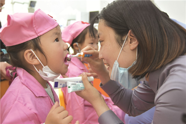 環翠樓街道商圈為孩子們進行口腔義診。 鞠萍 攝