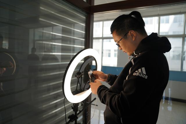 ??工作人員正在進(jìn)行直播前的準(zhǔn)備。