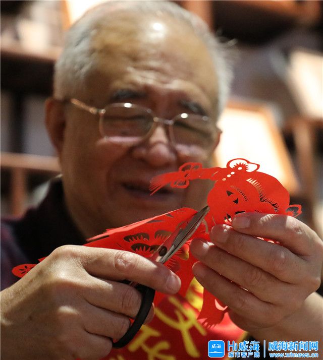 ??????威海剪紙的省級(jí)非遺代表性傳承人王言昌一邊演示,一邊介紹威海剪紙的情況:“威海剪紙題材廣泛,花樣繁多,既可以參照實(shí)物剪得分毫不差,又可以夸張到令人嘆為觀止的地步。如今,威海剪紙已形成構(gòu)圖簡(jiǎn)潔、線條流暢、寓意鮮明、粗獷之中兼具抽象夸張的審美取向。”
