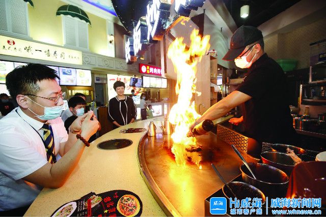 ??????12日晚,位于威高生活匯三樓的“探魚”幾乎滿座,家庭消費居多,老人、年輕人和孩子坐在一桌,吃著香噴噴的各式烤魚;附近的“海底撈”火鍋店,等位區還坐著不少顧客。