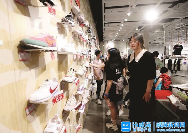??????在購物中心二樓,很多女性在家人的陪伴下挑選著心儀的服裝。“威高的服裝品牌上新挺快,我們一般在這里吃完飯,然后逛逛店、買買衣服,運動潮牌和職場裝都不錯,挺方便。”市民張女士心生歡喜地選著衣服,她的先生則抱著孩子一路陪著。