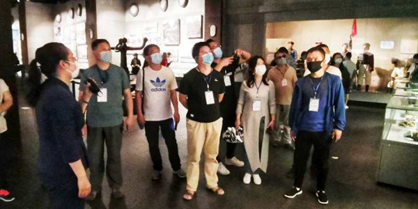 采風團一行參觀中國甲午戰爭博物館陳列館。(攝影 紀春章)