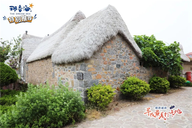 ??????沒錯,到東楮島,最惹人注目的就是那成排連片的海草房。高高隆起的屋脊,堆尖如垛,壘石為墻、覆草為頂,色調清淺舒適。著名畫家吳冠中先生看過這里的海草房后,曾贊美道:“那松軟的草質感,調和了堅硬的石頭,又令房頂略具緩緩的弧線身段”“看一眼那漁家院子,立即給你方穩、厚重的感覺”。