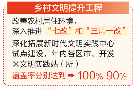 ??????強化環(huán)境整治力度還將延伸至鄉(xiāng)村。我市將深化改善農村居住環(huán)境,推進“七改”和“三清一改”,鞏固擴大城鄉(xiāng)環(huán)衛(wèi)一體化管護成果。并深化拓展新時代文明實踐中心試點建設,推進美麗庭院創(chuàng)建活動,引導農村群眾改善居家面貌,養(yǎng)成健康文明生活習慣。