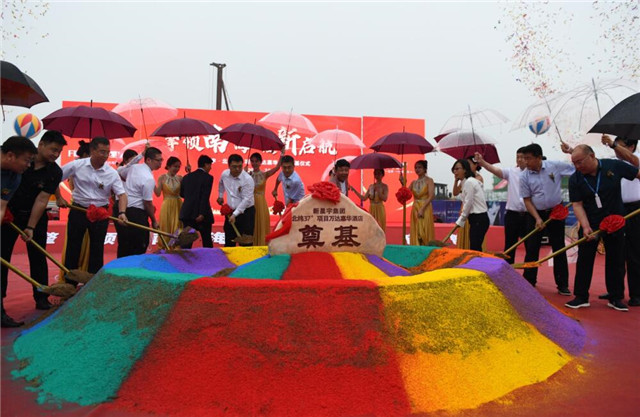 ??????6月29日,南海新區(qū)新星宇·威海萬達(dá)嘉華酒店項(xiàng)目開工奠基儀式舉行。現(xiàn)場(chǎng),一輛輛工程車有序擺列,打樁機(jī)高高聳立,整裝待發(fā)。