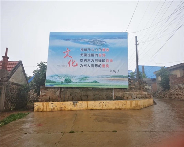 ??????在經區泊于鎮,“根植于內心的修養,無需提醒的自覺,以約束為前提的自由,為別人著想的善良”等好人文化宣傳標語隨處可見;“文明新風”宣傳畫前,志愿者正在清掃衛生;村委辦公室門前,不時有村民駐足閱讀公告欄上張貼的“四德榜”。
