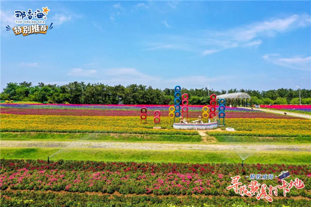 在錦繡花海西邊不遠(yuǎn)處,有一處海水浴場(chǎng)名叫逍遙灣國(guó)際海水浴場(chǎng)。