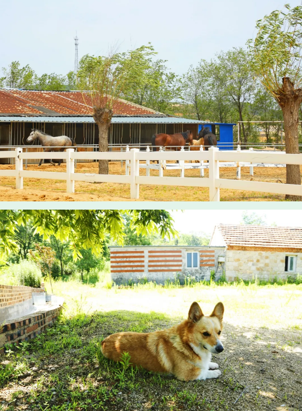 西七夼村旅游業發達,以往一到節假日,村莊南側百斯特馬場內早早就擠滿游客。馬場后面小山坡上,也有一個民宿區。炎炎夏日,馬場主人孫鵬飼養的柯基犬松子最喜歡敞著肚皮在這里,和小朋友們一起乘涼、嬉鬧。