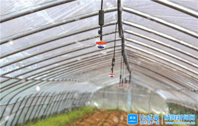 ?????6月4日12時許,在文登區宋村鎮菜園子村北山的大棚里,村黨支部書記、村委會主任劉曉明和市農業農村事務服務中心駐村第一書記肖兆捍打開噴灌系統,給大棚里的地瓜澆水。水靈靈、綠油油的地瓜苗,看著就讓人舒心,就像菜園子村如今的生活,蒸蒸日上。