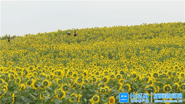 在環(huán)翠區(qū)張村鎮(zhèn)柳溝南山、姜南莊和福德莊附近,近千畝的向日葵迎風(fēng)而立,在藍(lán)天白云下勾勒出一幅美麗的畫卷。