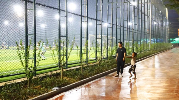 ??????亮威藍翼足球俱樂部成員王天亮說:“球場環境打造得非常愜意!這種封閉式的球場一方面是安全,另一方面踢起來比較放松,像一個小基地的感覺。以前這附近有不少占道的,還有垃圾和違章建筑,后來社區開始清理整治,規劃停車位、搞綠化,還建起來這么好的公園,我覺得這確實符合政府對市民的承諾,政府真心實意解決問題,把實事兒做到了老百姓心里。”
