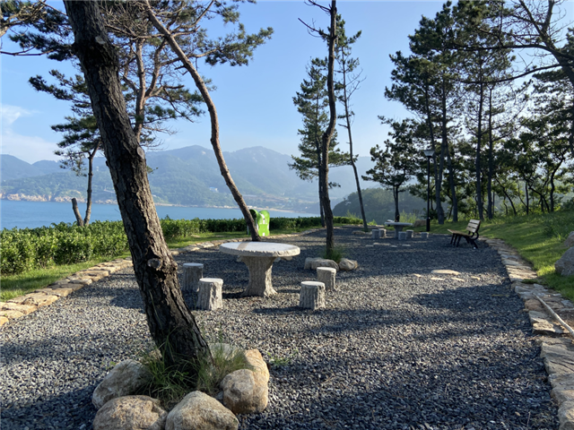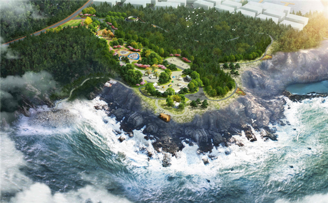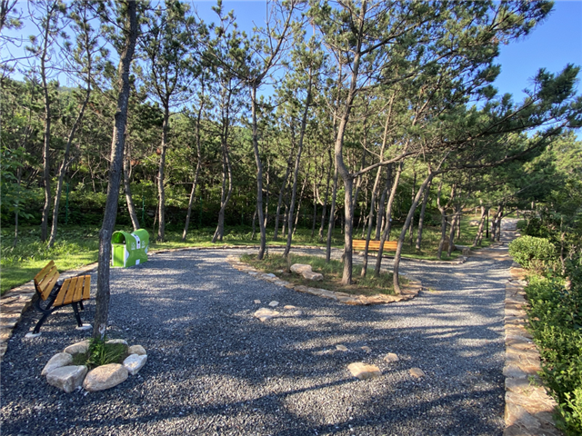 ????這里樹木蔥蘢、綠意融融,這里縈山繞海、遠離喧囂。漫步于此,你可以看到步道上點綴著貓爪汀步石,兩側(cè)擺放著不同的玻璃鋼卡通雕塑小品,讓人不時收獲驚喜。走累了,坐在觀景平臺的原生態(tài)休憩木椅上,仰望碧海藍天,俯聽浪濤拍打石礁,感受海風輕拂,愜意極了。