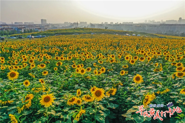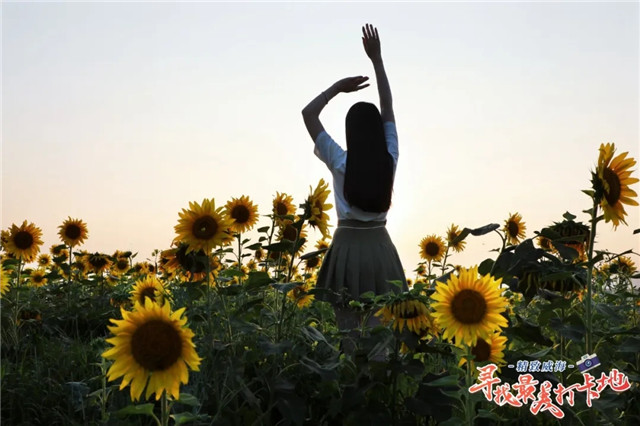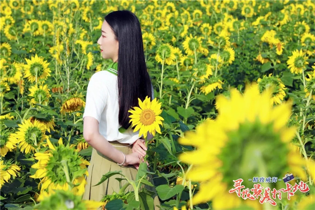 ??????司馬光有詩,“更無柳絮因風起,惟有葵花向日傾。”與格桑花、油菜花、百日菊等優雅的氣質不同,向日葵熱烈而燦爛、向陽而生,傳遞著一種熾熱的情愫,當你走近這片花海,萬般煩惱、千般不如意皆能消化在風里,融化在花海中。