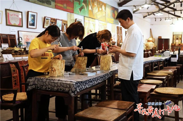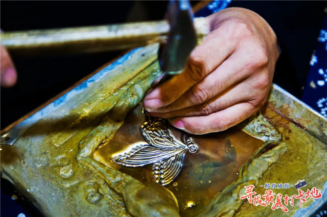 在吉呈軒,除了可以看到破損的器物在耿海勝手中“涅槃重生”,你也可以親自“上陣”,做一回鋦匠。一個看似簡單精巧的銅勺,做起來也并不簡單,需要反復用錘敲出造型、鏨刻圖案、打磨拋光……東西雖小,卻也是匠心演繹!