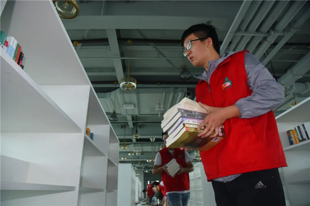 與此同時,來自石島管理區城建等部門和單位的志愿者也自發地來到書房,主動承擔了書籍的搬運、擺放、整理任務。“不同種類的書籍要放在不同區域的書架上,這樣方便市民前來找書閱讀。”志愿者們一邊忙碌著,一邊介紹道。