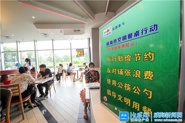 ??????在威海抱海大酒店,無論是酒店大堂還是各大包廂內,“光盤行動,拒絕‘剩’宴”的溫馨提示標語隨處可見,時刻提醒著就餐顧客謹記節約糧食、杜絕浪費。