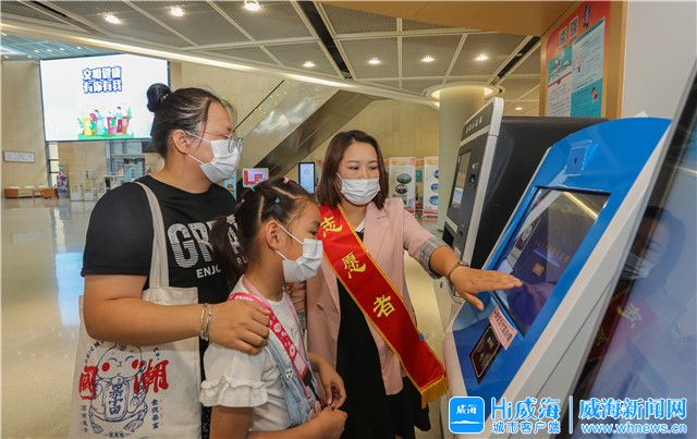 ??????在威海市圖書館,志愿者為市民講解借閱卡的辦理詳情