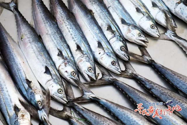 ????巴掌大小的對蝦、活蹦亂跳的皮皮蝦、躍躍欲試的八爪魚、純野生的牡蠣、魚眼锃亮的鲅魚……琳瑯滿目的海鮮沿著長街一字排開,質樸的漁販為自家新鮮的海鮮賣力吆喝,前來挑選的人絡繹不絕,既有周邊熟絡的老顧客,也有慕名而來的外地朋友。