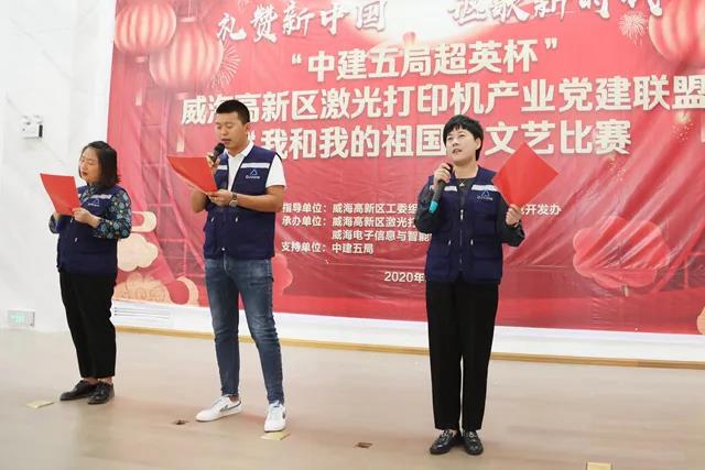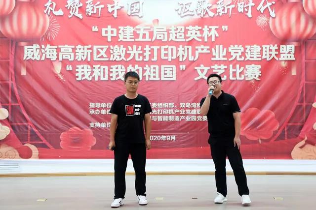 ???“禮贊新中國,謳歌新時代”,9月29日,為慶祝中秋、國慶雙節的到來,由威海高新區工委組織部、雙島灣科技城開發辦主辦,高新區激光打印機產業黨建聯盟承辦,中建五局國家(威海)創新中心項目支持的“中建五局超英杯”我和我的祖國文藝比賽在雙島灣科技城隆重舉行,來自威海十余家單位的近20組選手齊聚雙島灣,同臺競技,放聲歌唱,共同祝愿偉大的祖國母親生日快樂!文藝比賽在一曲高亢洪亮的《陽光路上》中拉開了帷幕,隨后歌曲、舞蹈、樂器獨奏、朗誦等精彩節目輪番上演,選手們個個充滿活力,表演聲情并茂,絲絲入扣。整個現場百花斗艷,氛圍熱烈,掌聲不斷。