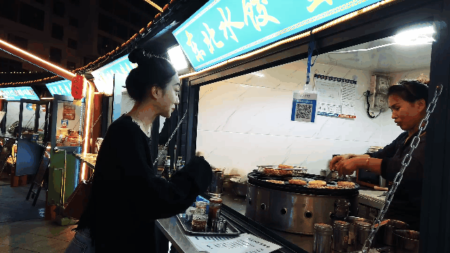 ????伴隨著打糍粑的聲音,夜市開始了。韓式炸雞、炒年糕等各種韓式小吃大放異彩,憑借其正宗的口味吸引眾多游客慕名前來,沿街還有各種韓式服裝和飾品的小攤,仿佛行至韓國特色街。