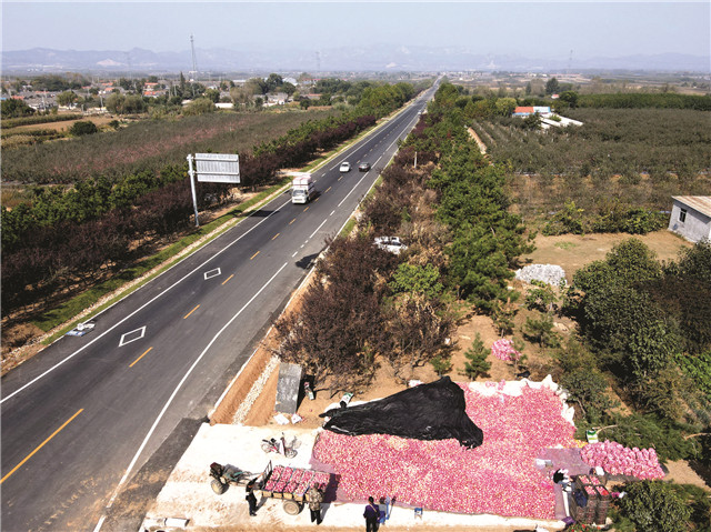 ??????西部環山路文登段的劉西線從文登區葛家鎮穿過,2019年6月就已經完工,極大便利了周邊村民。這個季節葛家鎮蘋果正在大豐收,沿著劉西線一路行來,拖拉機后車廂里、村邊的果園里、路旁的集中收購點、果農和果販的臉龐上,處處是喜慶的蘋果紅,染紅了西部環山路,也帶起了老百姓紅紅火火過日子的勁頭。