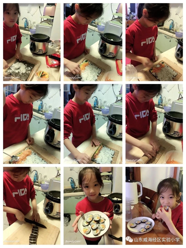 ????實踐課上,老師們介紹了壽司的起源、品種、制作程序等,孩子們聽得津津有味,有的還拿出紙筆進行記錄?;丶液?,同學們親自動手體驗一番,一盤盤美味的壽司陸續成功“出爐”,看著自己親自制作的壽司,孩子們臉上樂開了花。