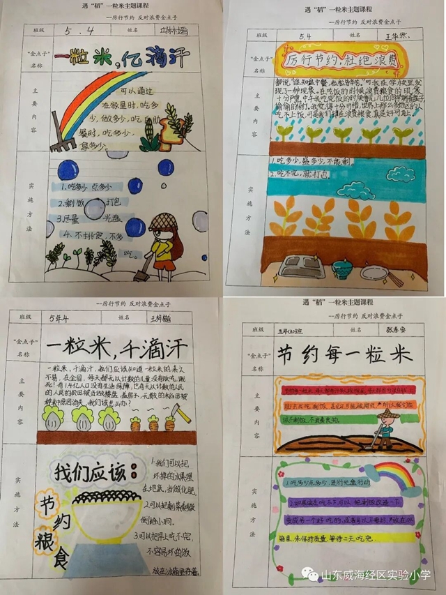 ????每一粒米都源于大自然的眷戀與饋贈,是從春華到秋實的時光凝練,從堅硬到香軟的一往情深。它承載著農民的辛勞與汗水,值得我們尊重。班會課上,孩子們了解一粒米的前世與今生,與小伙伴發現身邊的浪費現象,尋求改善方法。瞧,大家在課堂上積極參與,紛紛獻出自己的金點子,為改善浪費現象群策群力。