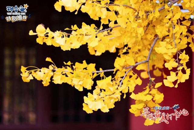 ????秋天是最為詩(shī)意的季節(jié),秋天的赤山,扇狀的黃葉渲染出秋意,紅色的爬山虎繞上印著龍圖騰的瓦片,大風(fēng)吹來(lái),楓葉就簌簌落滿一地。