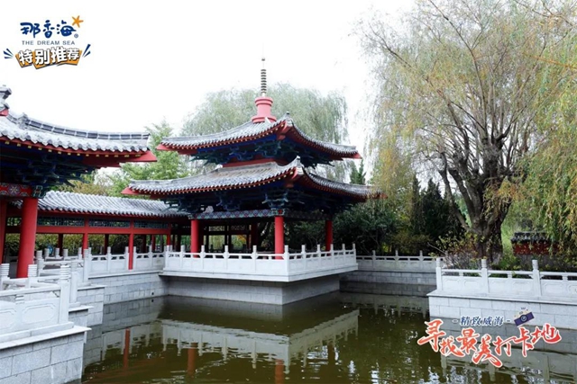 ????景區(qū)內(nèi)的宮宇全是仿唐建制,飛檐高高翹起,檐上五脊六獸排列開(kāi),寫(xiě)著“赤山閣”三個(gè)鎏金大字的牌匾,給這里更添一分古典美。
