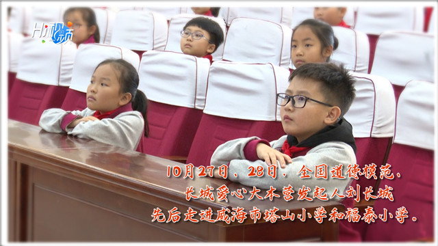 ??????10月27日、28日,全國(guó)道德模范、長(zhǎng)城愛(ài)心大本營(yíng)發(fā)起人劉長(zhǎng)城先后走進(jìn)威海市塔山小學(xué)和福泰小學(xué),與師生面對(duì)面交流探討品德思政教育。
