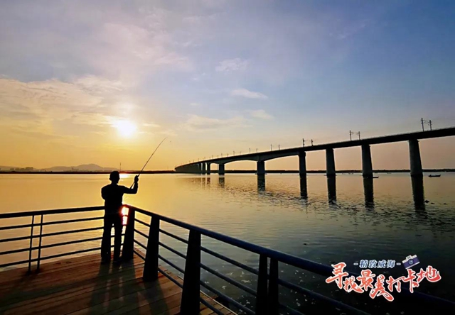 ????遠處有幾艘小漁船點綴在藍色的海面上,在海風(fēng)的吹拂下微微晃動。岸邊有海釣愛好者,在夕陽下盡情享受拋竿之樂,獨坐天地之間,仿佛萬千嘈雜與瑣碎,都隨著魚竿一拋而過,留下的只有純粹的享受。