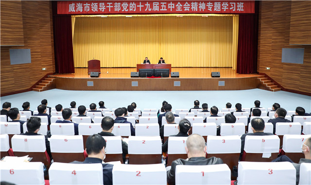 威海新聞網訊 12月3日至5日,威海市舉辦全市領導干部黨的十九屆五中全會精神專題學習班。市委書記張海波在開班式上作宣講,市委副書記、市長閆劍波作總結講話,市委常委、組織部長劉升勤主持結業式。