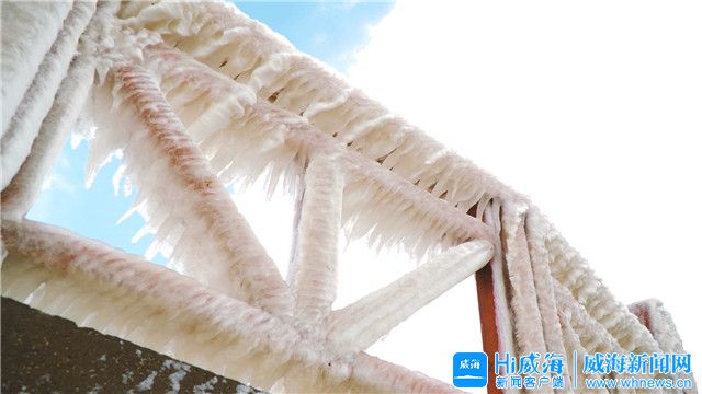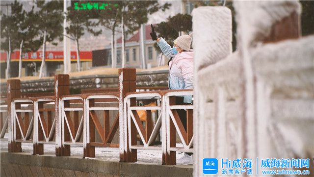 輕盈的雪花落滿了威海大地,在海邊的護欄處,形成了一個個晶瑩剔透的冰凌掛,意境唯美,猶如進入了童話般的冰雪世界。