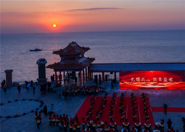 據(jù)了解,現(xiàn)場慶祝活動(dòng)共分為“朝舞成山 文脈綿長”“日出成山 放飛希望”“光耀成山 鼓舞盛世”“圓夢(mèng)成山 紅心向黨”四部分,廣大群眾、景區(qū)工作人員和游客們以大鐘祈福、漁家鑼鼓、集體舞蹈等形式,表達(dá)迎接新年到來的喜悅。