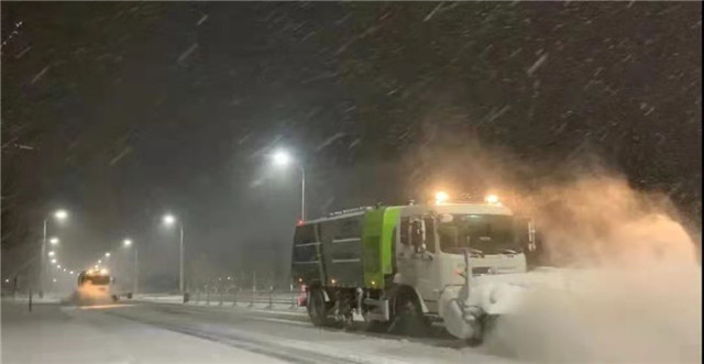 ??????為應(yīng)對(duì)此次風(fēng)雪天氣,南海新區(qū)各相關(guān)部門嚴(yán)陣以待,提早調(diào)試、調(diào)度好掃雪鏟冰設(shè)備。從1月6日晚間23時(shí)至7日上午,南海新區(qū)相關(guān)部門根據(jù)雪情對(duì)轄區(qū)各主干道進(jìn)行不間斷除雪作業(yè),20輛專業(yè)作業(yè)車輛、5輛勘察車輛和200多名清雪人員輪番上陣,利用機(jī)械對(duì)道路快、慢車道的積雪進(jìn)行清掃,成堆的積雪及時(shí)組織車輛外運(yùn)。