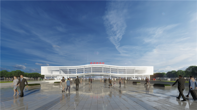 ??????威海南海站位于金海路以西,威青高速以南,緊鄰環海路望島村附近,站場規模為二臺4線,采用“下進下出”的進出站流線模式。站房在設計上,以現代科技感融入濱海特色為設計理念,整體造型以方正為主,借助柔和的波浪曲線塑造出海浪奔涌般的形象,展現出靈動之美。