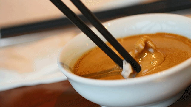 將肉往銅鍋一涮,再于麻汁蘸碟滾一圈,送入口中,鮮甜的味道便能瞬間占據所有的感官。鮮美,卻沒有鮮貨或多或少都有的腥味兒。