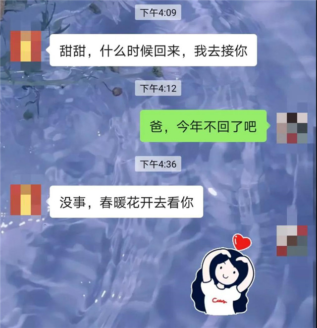 ??????爸爸問甜甜過年什么時候回來,她說不回了,爸爸沒有半句埋怨,只說了一句話:“沒事,等春暖花開去看你。”