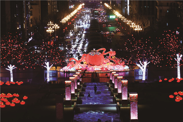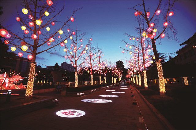 ??????夜幕降臨,走在市區(qū)的主干道上,一股濃濃的年味迎面撲來:新威路上,火紅的小燈籠掛滿枝頭,將道路兩旁的樹木點綴得分外喜慶;昆明路上,五顏六色的LED燈串妝點了綠化帶,視覺效果繽紛而炫目;各公園廣場上,立體景觀也亮起了燈,造型各異的裝飾與點綴,給城市的夜色增添了喜悅與祥和的氛圍……