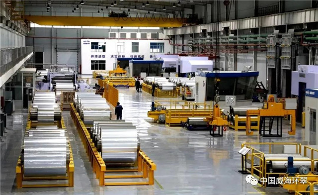 ??????在張村鎮,威海海鑫新材料有限公司的生產車間里,機器聲轟鳴,工人們正在緊張生產,現場忙碌而有序。