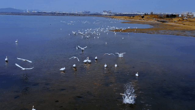 ??????大天鵝在榮成的生活可謂“養尊處優”,幾個月下來,大天鵝體重上升,碩大的身體已經不適合長途跋涉,因此在這之前,它們會積極練習飛翔,使自己的翅膀柔中有剛,以保證有充足的體力完成這次路途遙遠的遷徙。