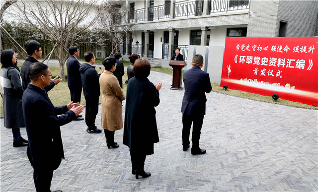 ??????3月18日上午,環翠區竹島街道“初心·1932”紅色印跡館院內氣氛莊重。《環翠黨史資料匯編》首發暨環翠區“家門口學黨史”啟動儀式在這里舉行,向一代代共產黨人致敬,為中國共產黨成立100周年獻禮。